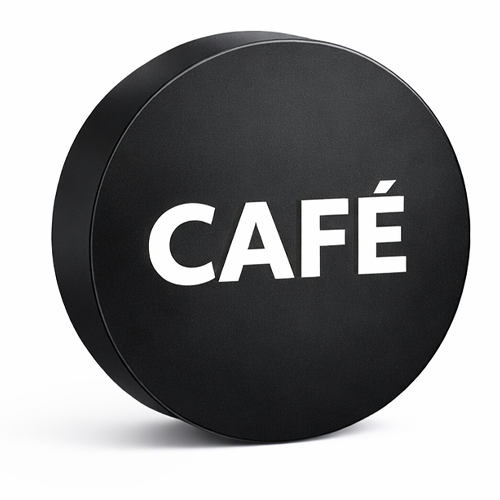 Os laterais em acrílico opalino permitem a saída de luz ao longo de todo o perímetro da caixa circular, realçando o volume do rótulo e aumentando significativamente a sua visibilidade, mesmo quando observado em ângulos laterais. As costas em PVC estrutural garantem rigidez, estabilidade e durabilidade ao conjunto.