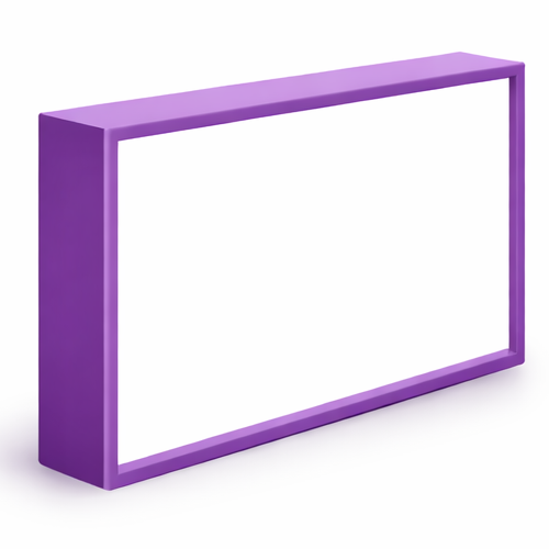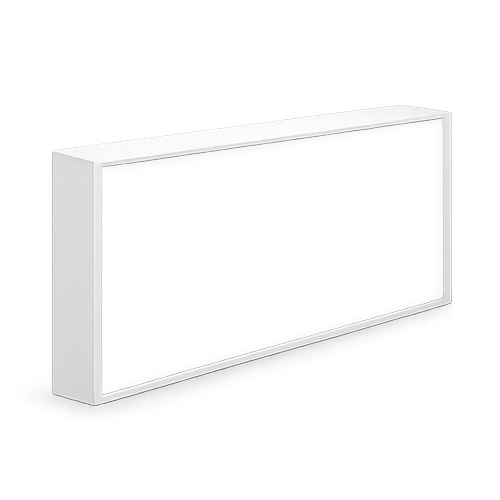 A sua construção baseia-se numa estrutura rígida e resistente, com costas em PVC e frente e laterais em acrílico opalino vazado, permitindo que a iluminação LED interna se distribua de forma homogénea em toda a superfície visível.
